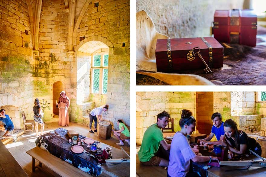Enfermés dans une pièce de la fortification, nous nous creusons les méninges en équipe tandis que la flamme de la bougie nous sert de compte à rebours. Quelle pression ! Mais quelle rigolade, nous adorons être plongés dans cette ambiance moyenâgeuse et les décors mis en place nous y aident bien.